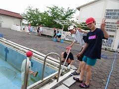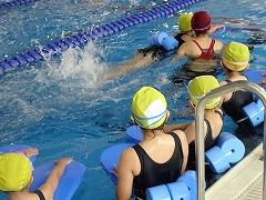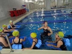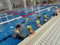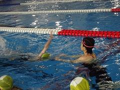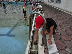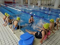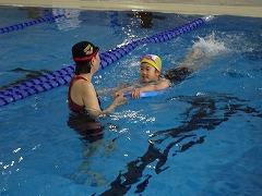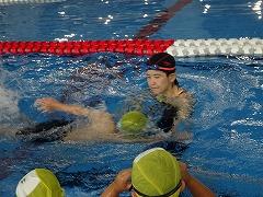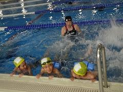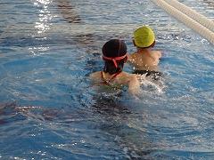 ↓準備体操をして、シャワーを浴びて、いよいよプールに入ります!1グループ7,8名ずつで、個別にやさしく丁寧に教えていただきました。