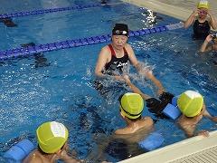 ↓アザレアでのスイミング教室の様子です。ばた足のコツやクロールの手の動かし方を、一人一人丁寧に教えていただきました。