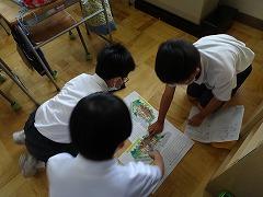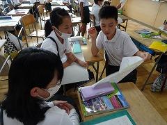 ↓グループで、調べたことを交流しました。グループのメンバーは、それぞれ違う資料で調べていますので、聞きたい気持ちが高まっています。