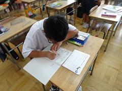 ↓4年社会 水をきれいにするためにどんな工夫をしているか、授業の残り5分、まとめを集中して書いていました。