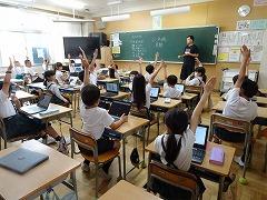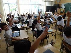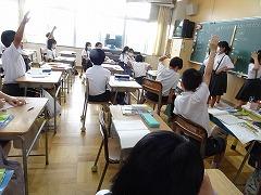 ↓5年生社会科 研究授業を行いました。温かい土地の暮らしの学習です。まず学習課題を確認して、1時間の学習の見通しをもちました。