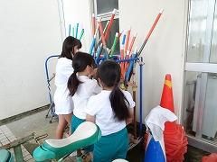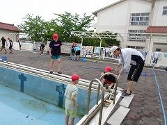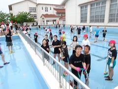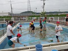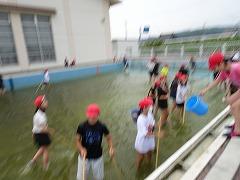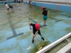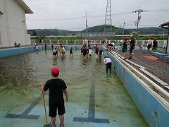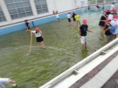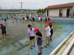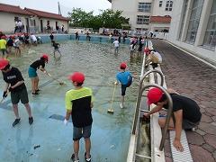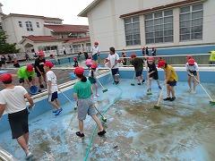 ↓6年生がプール掃除をしてくれました。1年間の汚れをきれいにとって、磨いてくれました。力を合わせて全校のためにありがとう!