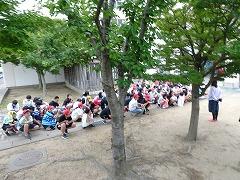 ↓体育館でも、人数の確認ができましたので、お話を聞いた後、集団下校を開始しました。