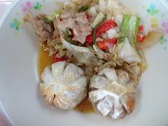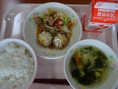 ↑今日の給食は、中華料理を楽しみました。ごはん、パオズ、ホイコーロ―、わかめスープでした。