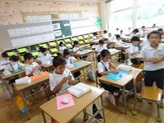 ↓1年2組さんが鍵盤ハーモニカの練習をしていました。楽しそうです。