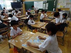 ↓1年生算数科 たし算カード練習です。ペアでカードを取り合って練習しました。