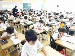 ↓朝学習は漢字、1年生も集中して学んでいます。
