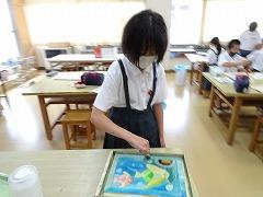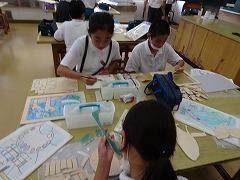 ↓5年図工 糸鋸ミシンで板を切って、パズルにしていきます。そして色を付けて、ニスを塗って仕上げていきます。集中して作業を進めていました。
