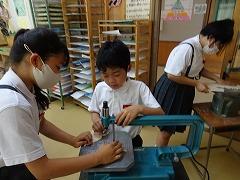 ↓5年図画工作科 糸鋸ミシンで切って、パズルを作っています。