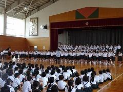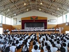 いよいよ明日が、津幡町音楽会です。条南小ではリハーサルを行い、1年生から4年生は高学年の歌声を聴かせていただきました。