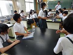 ↓4年理科 雨水の行方の学習です。先生が、石川県のいろいろなところへ行って集めてきた砂や土を紹介し、子供たちは驚いて見て、わくわくしながら観察に入りました。