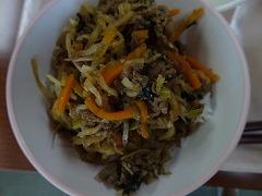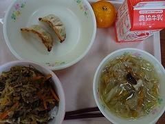↓今日の給食は、韓国料理、ビビンバ、焼き餃子、春雨スープ、冷凍みかんでした。にんにくがたっぷりの香り高いビビンバでした。ごちそうさまでした。