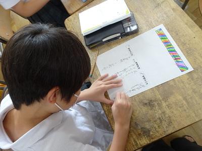 夏の思い出を絵にしたり短歌にしたりするために材料集めをしているクラス