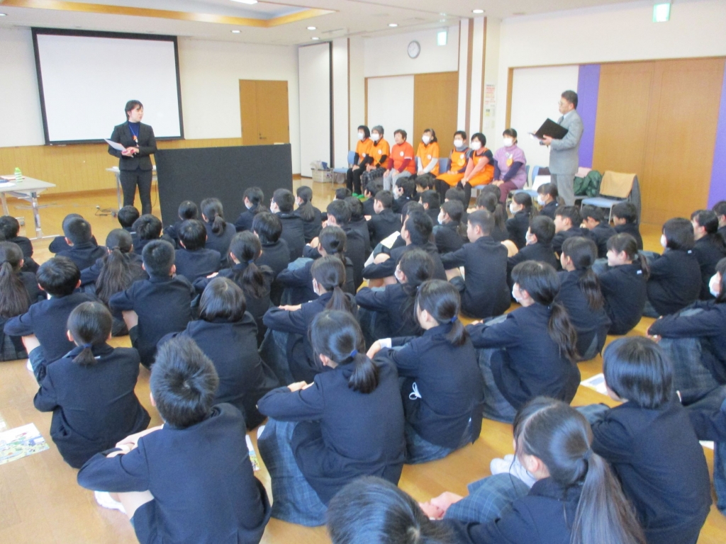 認知症サポーター(みかん隊)による認知症講座がありました。認知症を聞いたことがある子もいましたが、今回の授業を通してより深く学ぶことができました。対応の仕方等も具体的に教えていただきました。