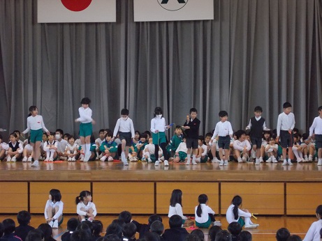 今までお世話になった6年生に感謝の気持ちを伝えるために、5年生を中心に1~4年生の出し物、そして6年生からのお礼の歌声が体育館に響きわたりました。