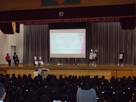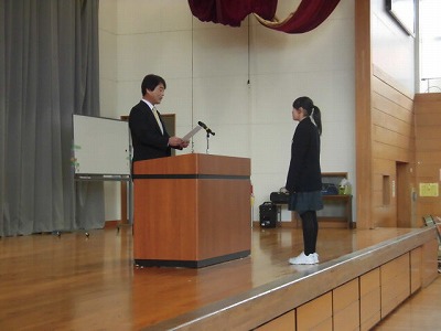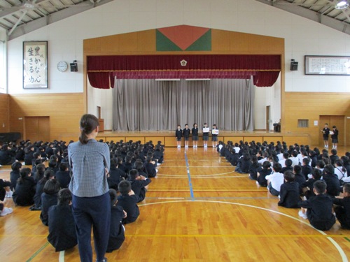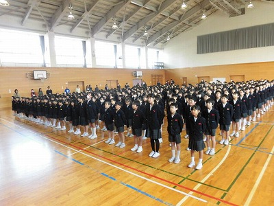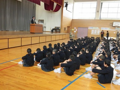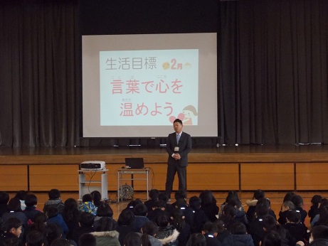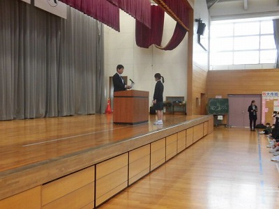 生徒指導の先生からは,1月の生活目標についてのお話でした。1月は,「廊下歩行を完璧にしよう!」です。みんなで落ち着いた学校生活を送れるように取り組んでいきたいと思います。