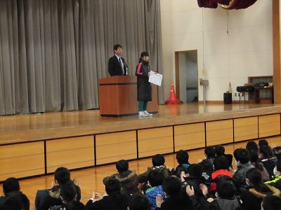 最後の英語スピーチコンテストの校内発表会では,代表となった5,6年生の児童が練習してきた成果を披露してくれました。全校の前で緊張していましたが,発音やジェスチャー,表情など,堂々とスピーチをしてとても立派でした。本番までもう少し練習を積み重ね,完成度を高めていきたいと思います。