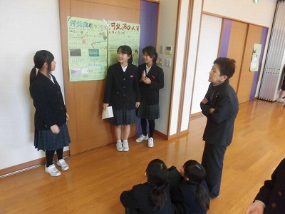 5年2組の児童は、今までの理科や総合の学習で川の流れや水害について学習してきたことをワークショップ形式で全校児童に伝えました。