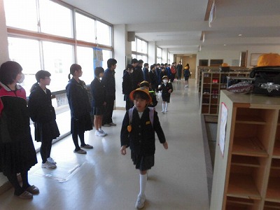 雨も降り,寒い中でしたが,中学校の生徒会と条南小の計画委員会の合同あいさつ運動でいつも以上に玄関が明るくなっていました。温かいあいさつがあふれていました。