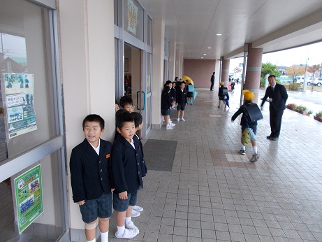 校長先生は,朝の登校時の素敵な行動を紹介してくれました。下級生を上級生がお世話をする姿や傘を正しく片付ける思いやりの行動,礼儀よくあいさつをする姿を広めてくださいました。