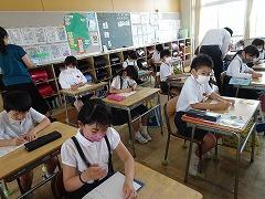 ↓5年生 国語 古典の世界を声に出して楽しむ学習です。徒然草や竹取物語、平家物語、おくの細道を声に出し何度も何度も読むと古典の言い回しに慣れていきます。そのうち暗唱もできるようになります。今日な何人か暗唱の挑戦に校長室にやってきました。暗唱することで、脳も活性化されます。