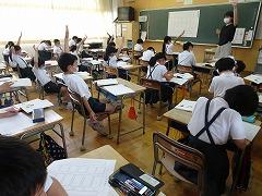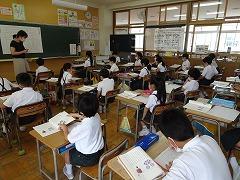 ↓3年外国語活動 漢字を何画で書けるか、英語でカウントしました。数を英語で数える学習です。これからも新出漢字の学習では英語でカウントしてくださいね。ALTの先生と担任のチームティーチングで授業をしています。