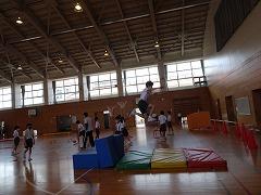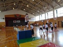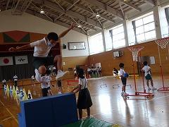 ↓今日は1年生対象の「サスケ」でした。運動委員会さんが、上手に1年生に声かけをして、サポートしていました。1年生は、いろいろなコースを回って、運動する楽しさを味わっていました。