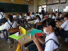 ↑茶道クラブです。地域の先生に教えていただいています。今日は、お茶の運び方、お菓子の回し方、お茶のいただき方、それから、畳の歩き方など丁寧に教えていただきました。和の文化を体験しています。