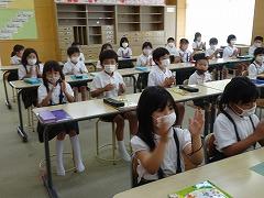 今日はプール開きを行いました。2年ぶりのプール開きです。6年生がプル掃除をしてくれたおかげで、全校のみんながプールに入ることができます。今年のプールは感染対策を徹底してのプール学習となります。いつもは2学級で入りますが、今年は1学級だけで入ります。マスクをしませんので、給食の時と同じように、しゃべらず行います。友だちと距離をとって、授業の後は、プールの水でプールサイドも殺菌します。しゃべらなくても、プール学習は楽しいですし、健康的な運動です。命を守る水泳ができるよう、1時間、1時間を大切にして、学習していきたいと思います。