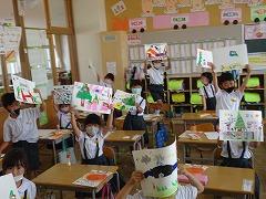 ↓2年生 図工 びっくり卵から何が生まれてきたかのな?