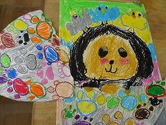 ↑1年生 紙をびりびり破いて、組み合わせると、さて何になったかな?