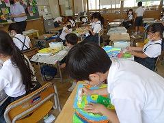 ↓3年国語 自分のおすすめの遊びについて、どんなところが楽しいか、カードに書いて仕上げています。これまでの授業で、書きためてきた下書きをもとに、仕上げていきました。