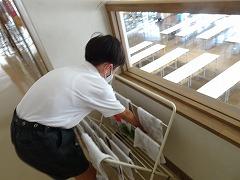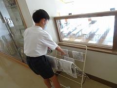 ↓掃除の時間の最後に、雑巾をきちんと並べてくれている人がいました。おかげで、廊下を通る人の心は、すっきりします。すてきな気づき、ありがとう。