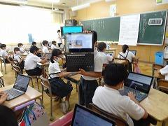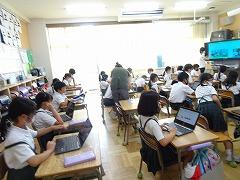 ↑3の1 パソコンサポーターの先生と一緒に情報モラルについて学んでいます。危険行為とはどんなものか一緒に考えました。