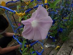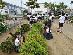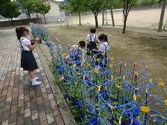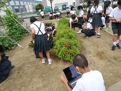 ↑1年生のアサガオもすくすくと育ち、毎朝涼しげな美しい花を咲かせています。クロームブックで自分のアサガオの写真を撮りました。