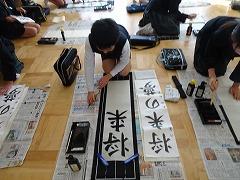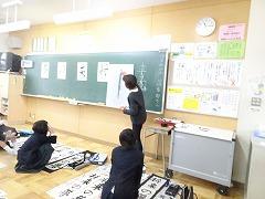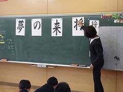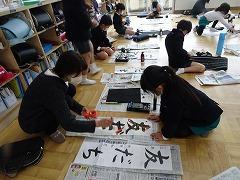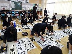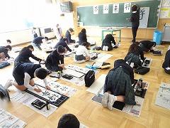 ↓地域の書道家、日展作家の高桑先生をゲストティーチャーにお招きして、書初め練習をしました。3年生以上の皆さんは習字で書初めに挑みます。新年、清らかな心で、美しいく力強く書初めができるように、筆つがいや字のバランスを直接ご指導いただきました。6年生は「将来の夢」に挑みました!