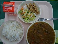 今日の給食は大好きなカレーです。