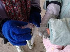 今朝は放射冷却で冷え込みました。氷を触ってみたり、氷の感触を足の裏で体感したりしている子もいました。