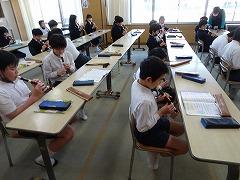 ↓6年理科 ムラサキキャベツを用いて、水溶液の性質を調べる実験です。キャベツを熱して、色素を抽出しています。みんな楽しそうに実験を進めていました。小学校での思い出に残る実験の一つになることでしょう。