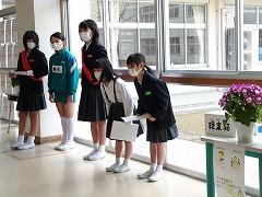 ↑礼儀正しいあいさつです。学校のみんなのために役に立つことを進んでしてくれて、すてきです。