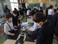 ↑4年理科 水を熱し続けたら、どうなるかな。温度の記録を取り、水の様子を観察して、記録しました。