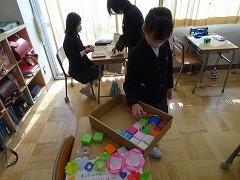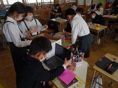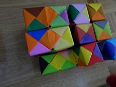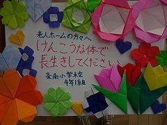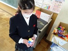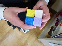 随分春らしくなってきました。4年生の皆さんが、地域の福祉施設に贈って、お年寄りの方々に喜んでもらいたいと、作っています。折り紙で作ったルービックキューブです。お年寄りの方々が手先を動かすことは、健康のためによさそうですね。
