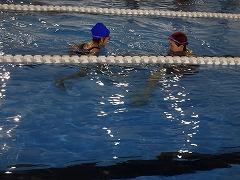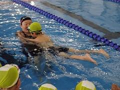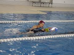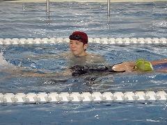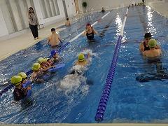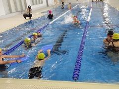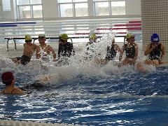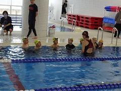 ↓準備体操をして、シャワーを浴びて、いよいよプールに入ります!1グループ7,8名ずつで、個別にやさしく丁寧に教えていただきました。