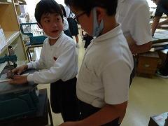 ↓5年図工 糸鋸ミシンで板を切って、パズルにしていきます。そして色を付けて、ニスを塗って仕上げていきます。集中して作業を進めていました。