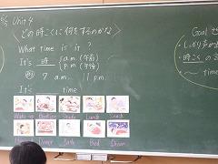 ↓4年外国語活動 どの時刻に、何をするか英語で会話をして伝え合いました。
