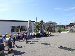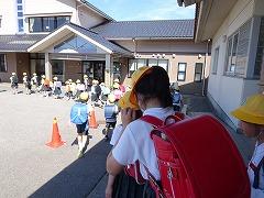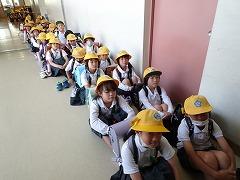 ↓今日は集団下校訓練を行いました。廊下で静かに並んで待機している2年生です。移動を開始しました。静かに決まった場所に移動できました。