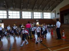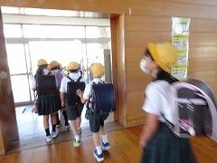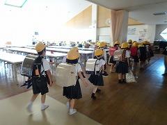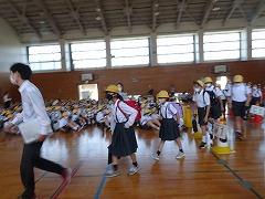 ↓体育館でも、人数の確認ができましたので、お話を聞いた後、集団下校を開始しました。