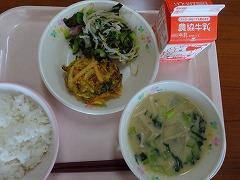 ↑今日の給食は、ご飯、野菜かき揚げ、いかとわかめのカミカミ和え、ごま汁でした。ごま汁にはおもちも入って。香ばしい味噌汁です。いかとわかめの相性は抜群で、よく噛んで脳を刺激するカミカミメニューとなっています。今日もおいしい給食、ごちそうさまでした。