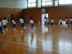 ↓5年 新体力テストのシャトルランで持久走を行っています。100回を超えた人もいて驚きました。