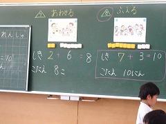 ↓1年生算数科 たし算カード練習です。ペアでカードを取り合って練習しました。